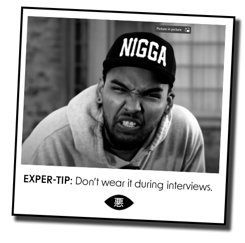 Fine personal picks. But they’ve already hit self-identification. From there, it’s a short journey to t-shirts and song titles. Plenty of sober adults would get them tattooed. No one you’d hang out with, but functional minds. Every insult ends in Odd Future’s “nigga” hat.