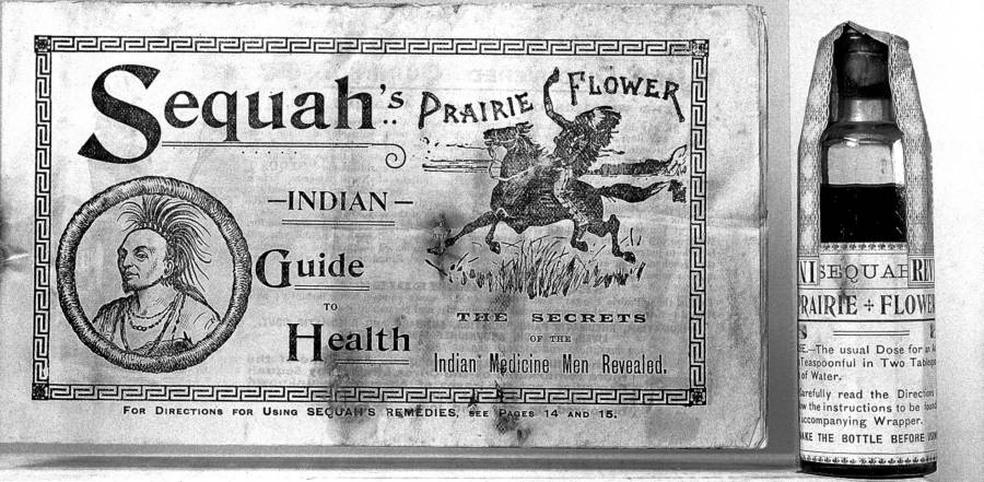 Stepping away from figurative and literal erasures, the layout raises questions. Namely, how much Prairie Flower did they chug first? There are three ways to read this title (say, Sequah's Indian Guide to Health) and all of them are embarassing.